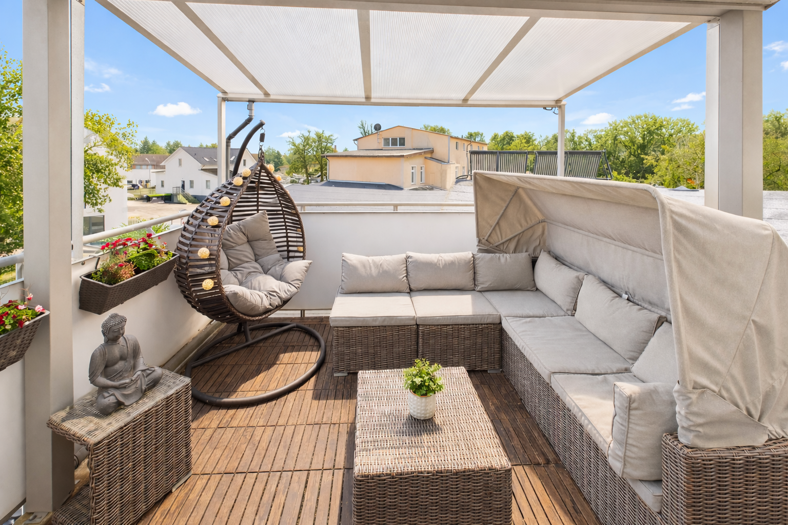 Mal ehrlich: Warum sollte man für viel Geld auf einen grauen Hinterhof schauen, wenn man stattdessen Seeblick, Natur, Weite und 185 m² echtes Lebensgefühl haben kann?