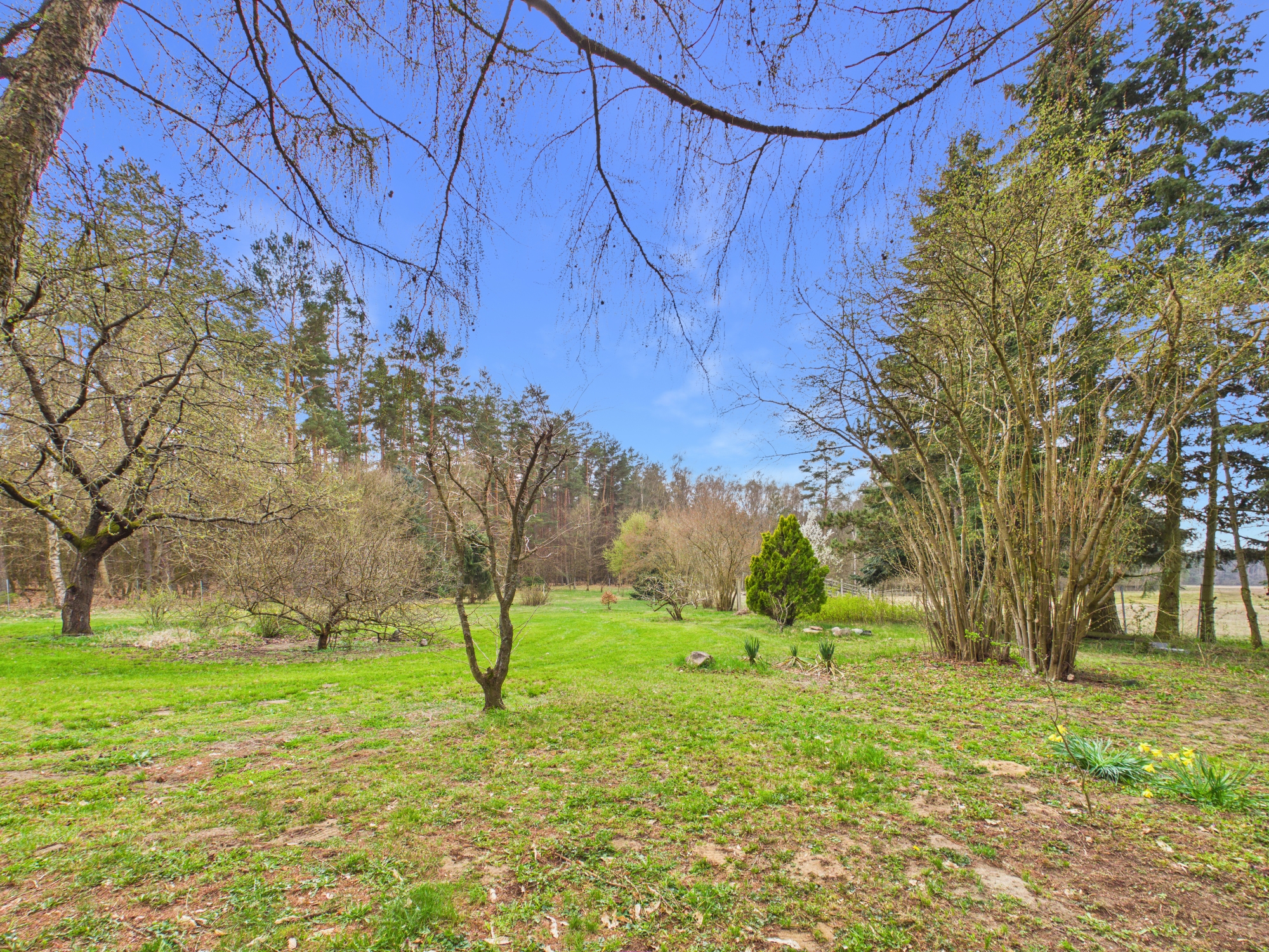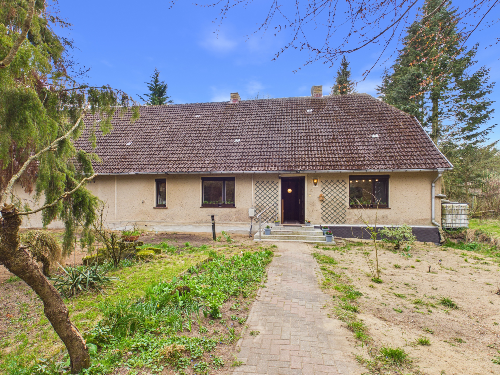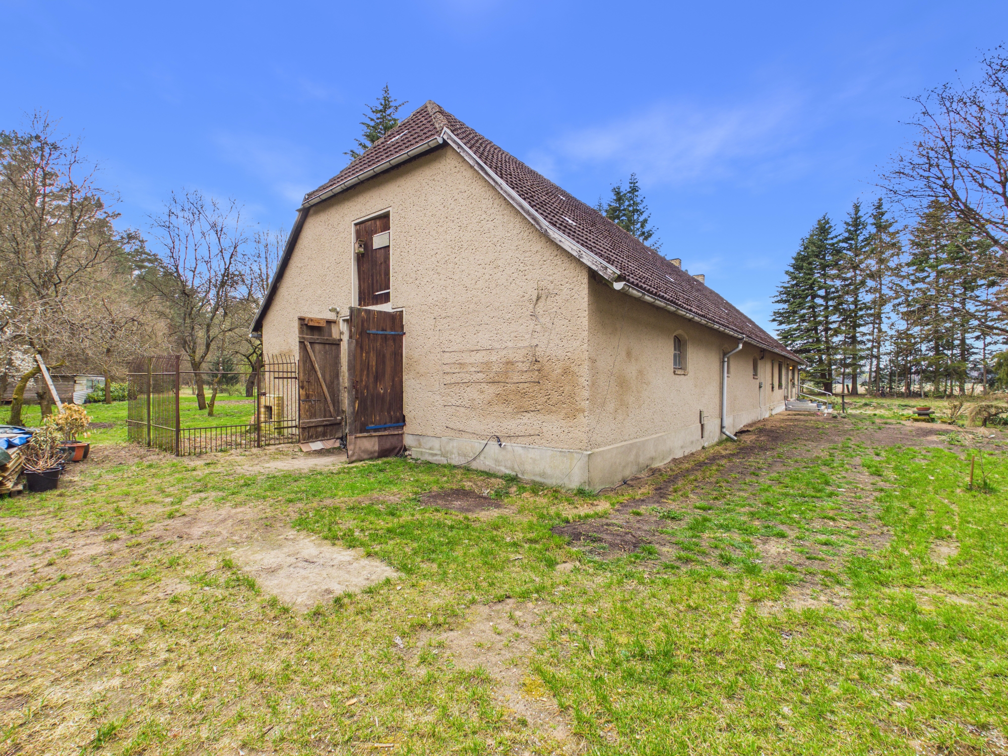 Am Ende einer langen, baumgesäumten Zufahrt beginnt dein eigenes Reich. Kein Durchgangsverkehr, keine direkten Nachbarn – nur Weite, Ruhe und das seltene Gefühl, wirklich für dich zu sein. Der nahe Mühlensee fügt sich still in diese Umgebung ein und wird schnell Teil deines neuen Lebensrhythmus.