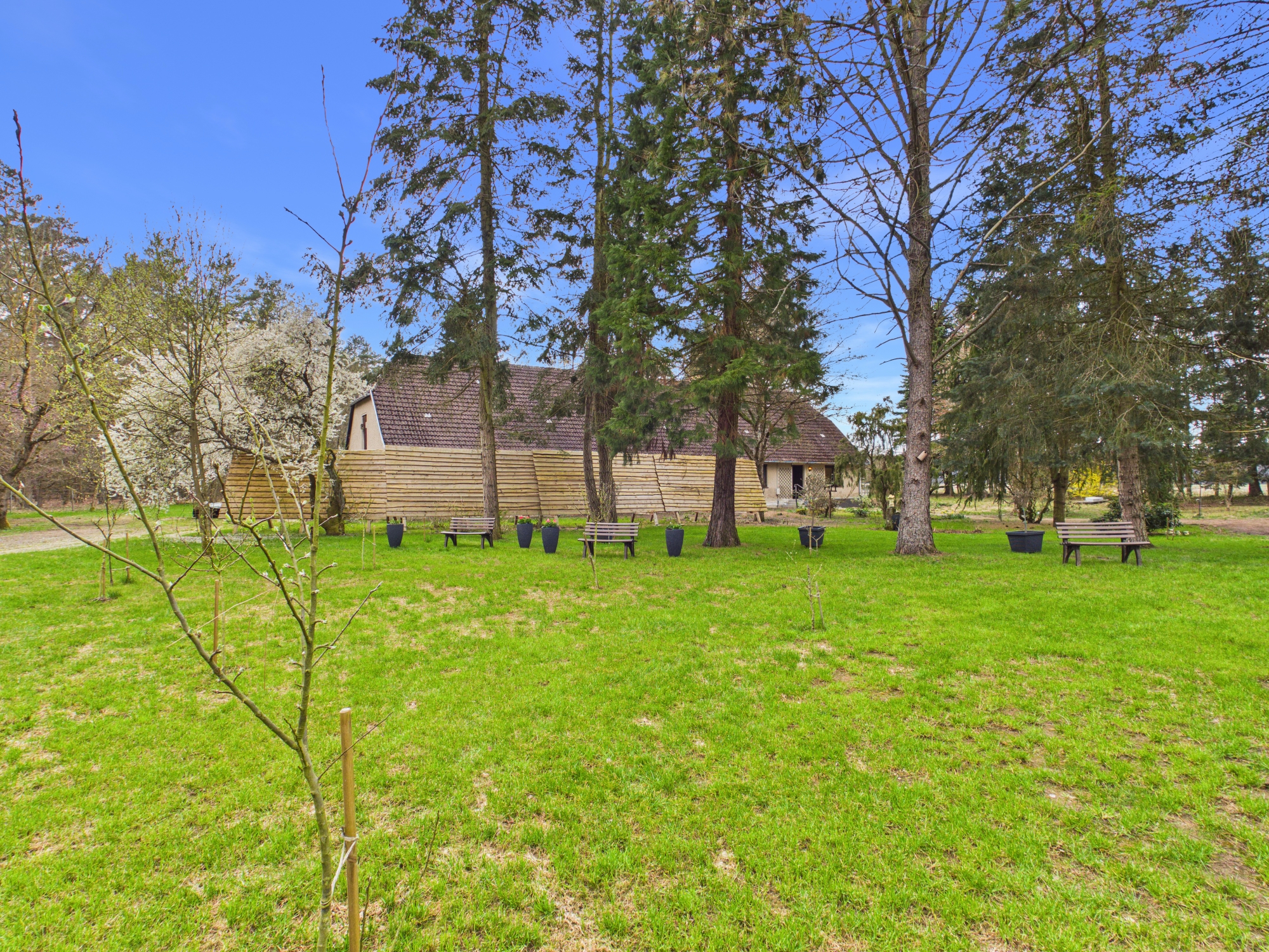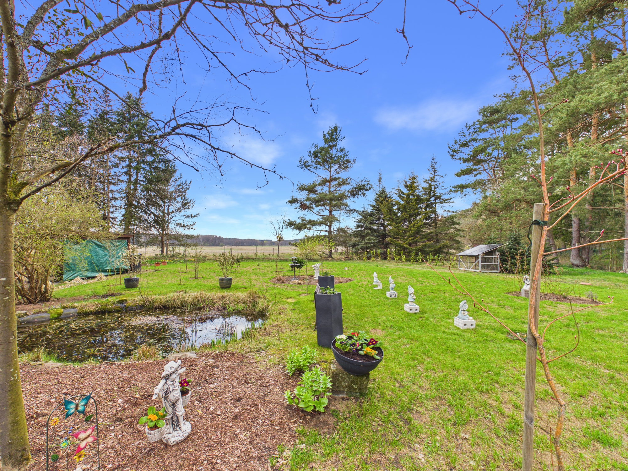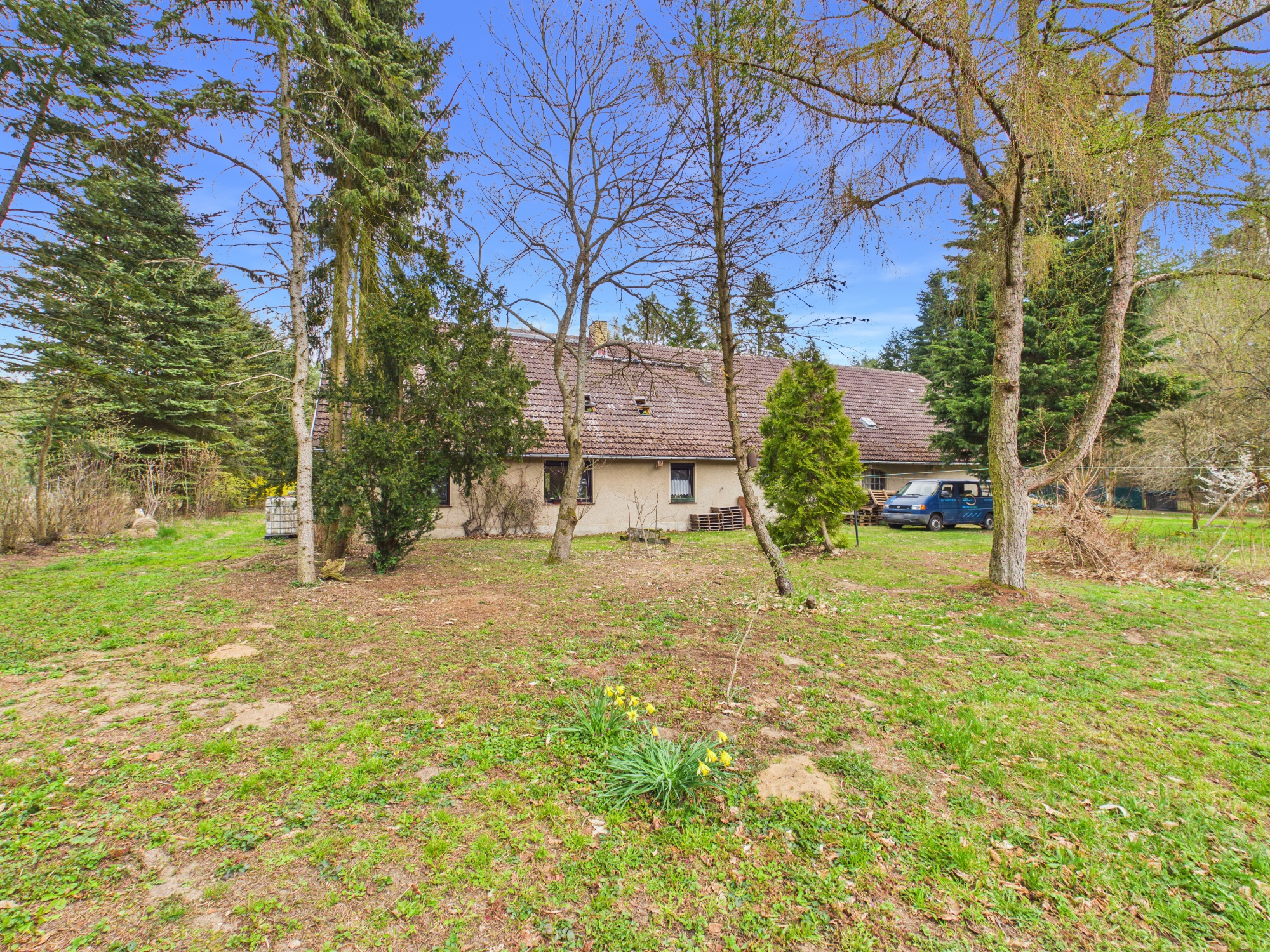 Am Ende einer langen, baumgesäumten Zufahrt beginnt dein eigenes Reich. Kein Durchgangsverkehr, keine direkten Nachbarn – nur Weite, Ruhe und das seltene Gefühl, wirklich für dich zu sein. Der nahe Mühlensee fügt sich still in diese Umgebung ein und wird schnell Teil deines neuen Lebensrhythmus.