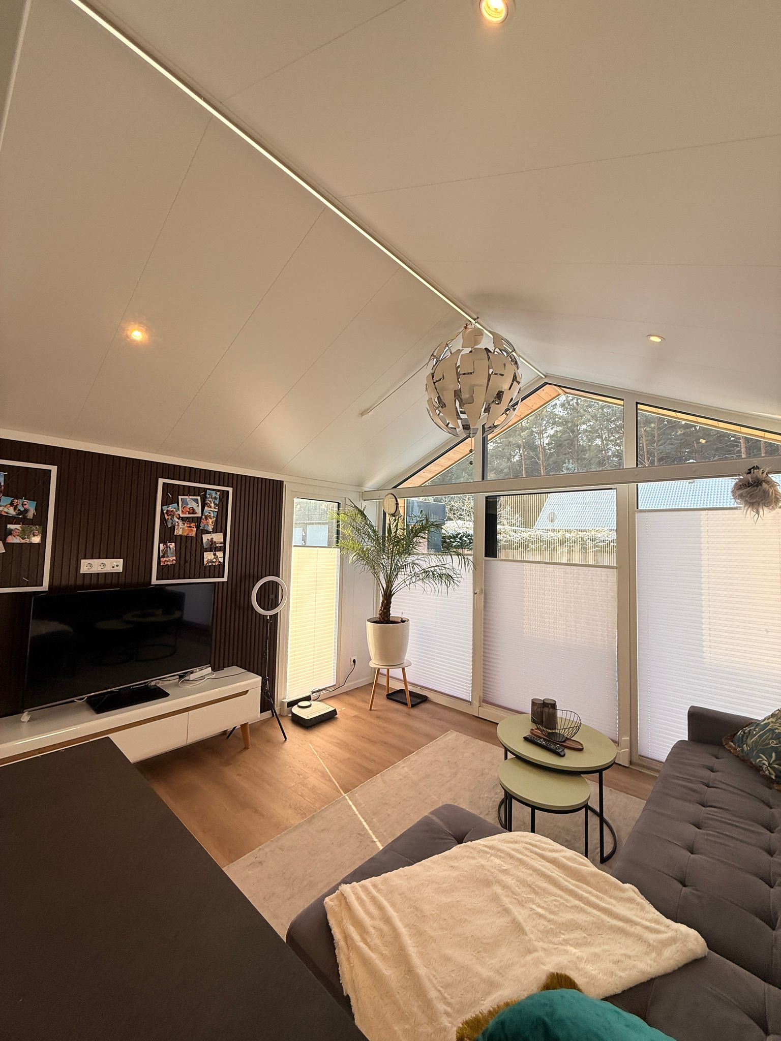 Große Fenster, weiches Sofa, viel Tageslicht.
