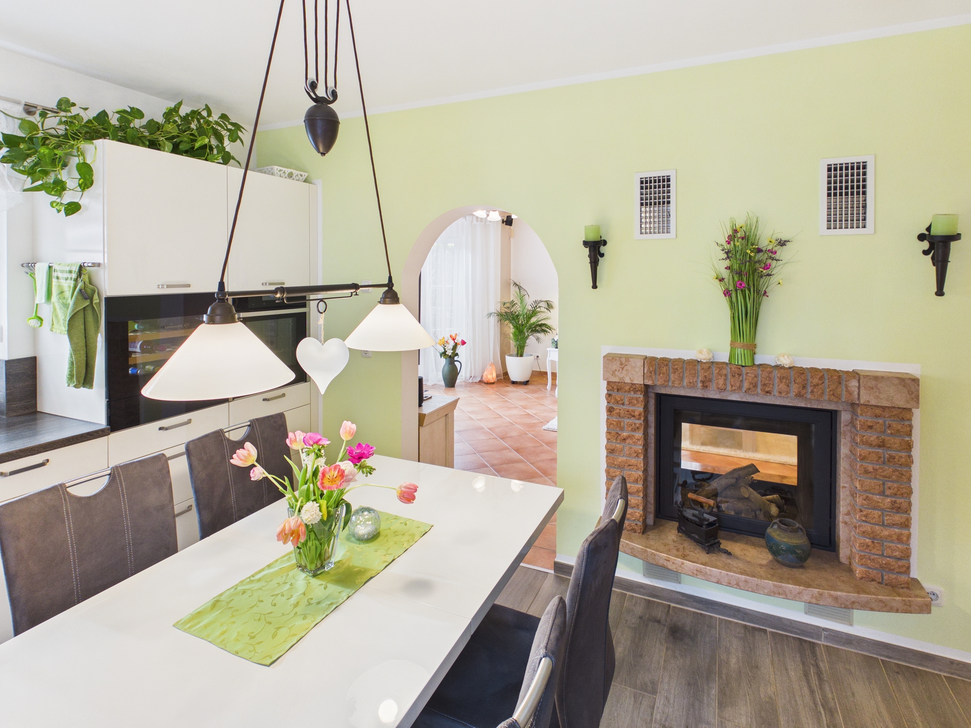 Kamin: zweiseitig – in Küche und Wohnzimmer bespielbar